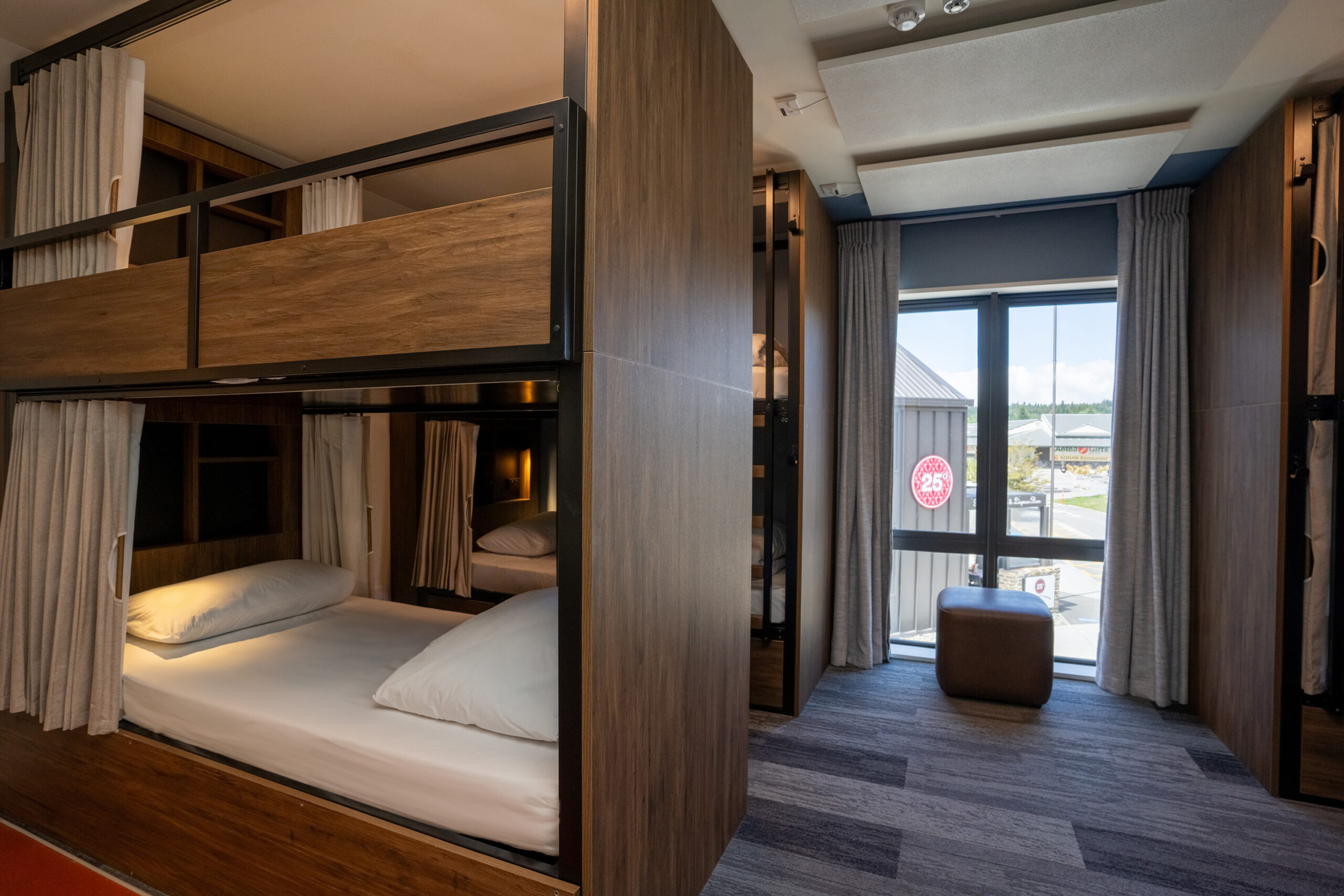 Each room has one King bed, hotel-quality mattresses, a set of pillows and towels. Pair that with bedside lamps, a TV in each room, an ensuite. A great means of a self contained stay in a warm and friendly hostel environment.